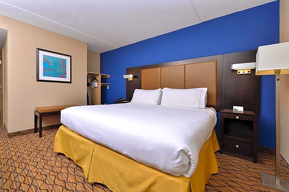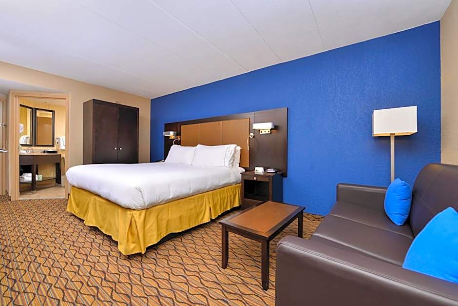 This room features a king bed, complementary wireless internet, flat-screen TV with cable channels, microwave, refrigerator, work desk, alarm clock, radio, coffee maker, hair dryer, coffee maker, iron and ironing board, and telephone.